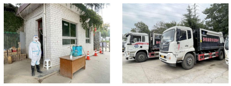 在西环公司涉疫涉疫垃圾清运应急车队,西环公司督导组对近期医疗废弃物清运、环境消杀、宣传教育、物资管理等疫情防控工作进行实地督导,并提出要以严格的规范管理和严密的工作举措确保医废处理全流程安全、全过程闭环的工作要求。