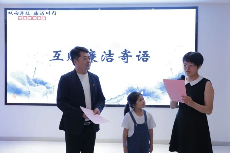 宣读《家庭助廉倡议书》、签订《家庭助廉承诺书》后,3组纪检干部家庭代表走上台,深情互赠廉洁寄语: