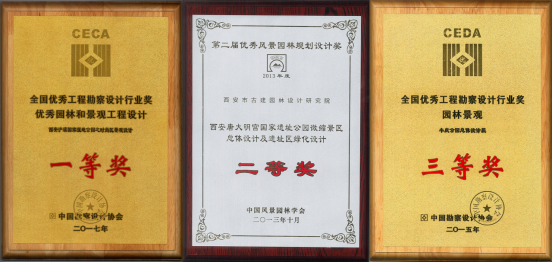 近年的获奖工程项目有:《西安唐大明宫遗址公园微缩景区总体设计及遗址区绿化设计》《西安市行政中心景观绿化设计》获2013年第二届全国优秀园林规划设计二等奖;《西安市丰庆公园总体设计》获2015年全国勘察设计行业奖园林景观三等奖、陕西省景观园林专项工程设计一等奖;《西安市未央广场(地铁行政中心站)园林环境设计》获2015年陕西省景观园林专项工程设计三等奖,中国勘察设计协会计成奖二等奖;《西安市浐灞国家湿地公园时尚区景观设计》获2017年全国及陕西省勘察设计行业园林景观专项工程一等奖;《咸阳市植物园规划设计方案》获2019年中国风景园林学会科学技术奖规划设计三等奖;《西安市红光公园园林工程设计》获2020年中国风景园林学会科学技术奖规划设计三等奖、陕西省优秀工程勘察设计园林专项一等奖;《靖边五台森林公园中心片区景观及建筑工程设计》《长沙桐溪寺景区景观及建筑工程设计》获2020年陕西省优秀工程勘察设计园林专项二等奖;《沈阳世界园艺博览会秦风苑设计》获综合类金奖、设计类银奖等多项奖;《第九届中国北京国际园林博览会西安园设计》获室外展园银奖、建筑小品优秀奖;《绿色城市街道设计—拆墙透绿工程建设指南》获陕西省优秀工程咨询成果三等奖;《西安市阿房宫公园可行性研究报告》获陕西省优秀工程咨询成果三等奖。