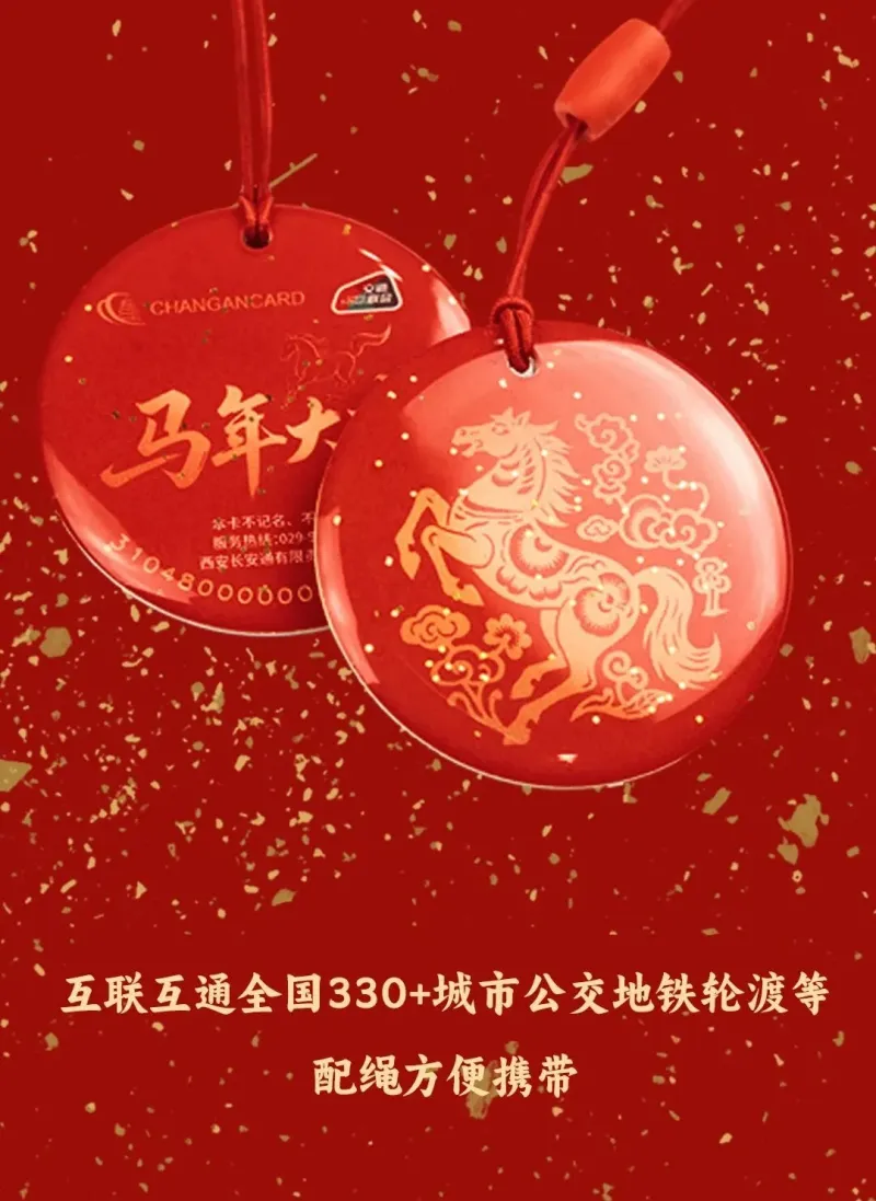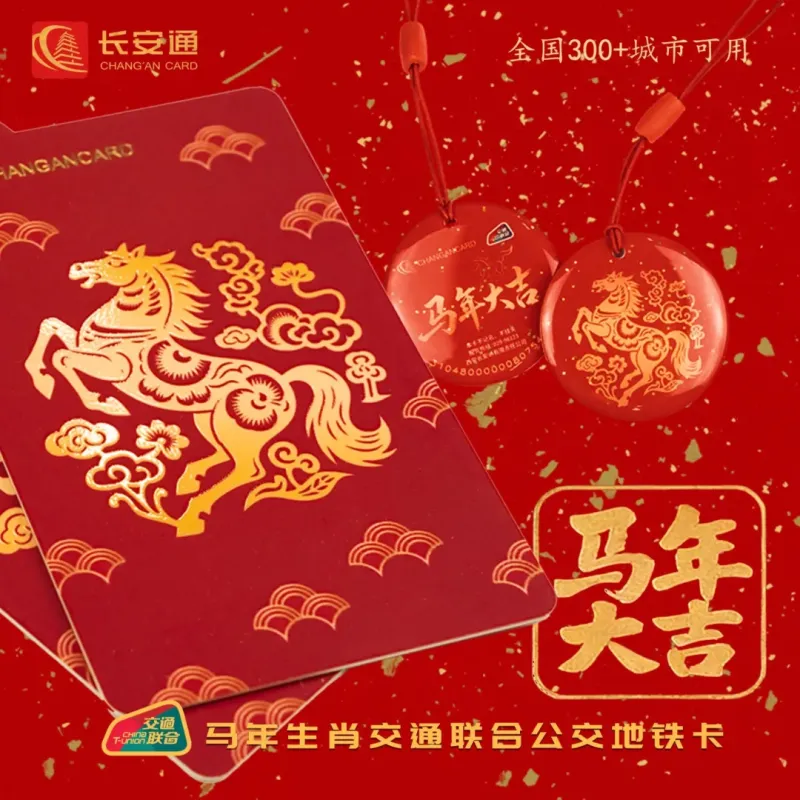 充满年味的马年生肖系列交通卡,受到了不少人的喜爱。红金撞色的“主题色”,搭配浮雕与烫金工艺,质感十足,卡片上奔腾的骏马线条流畅、姿态昂扬,生动诠释了“马到成功”“龙马精神”的美好寓意。纪念卡、滴胶卡和迷你卡三种形态,满足不同人群的使用需求,其中滴胶卡还融入金色闪粉,象征着熠熠生辉的新年运势。