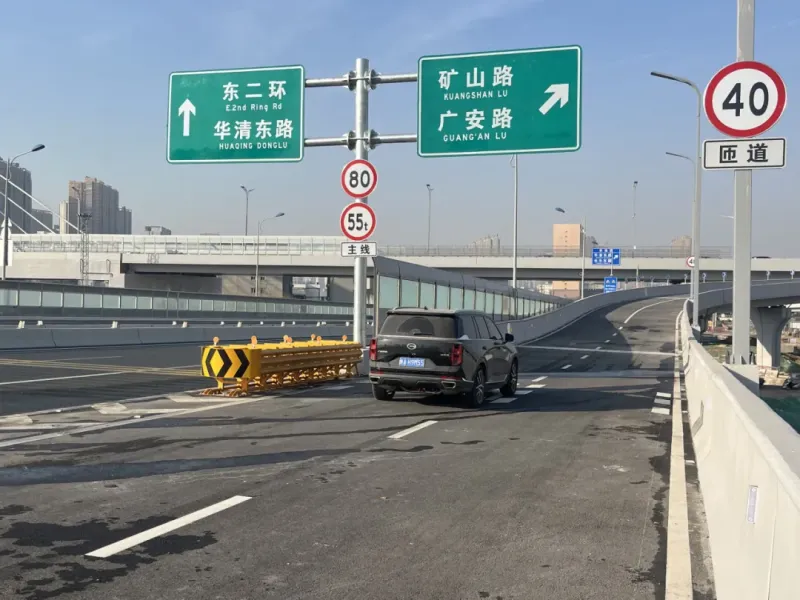 为推动匝道早日通车,项目团队倒排工期、统筹调度,开启“白加黑”轮班作业模式,确保5条匝道按期开放通行。此次通车的5条匝道,实现了幸福路与东快速干道的全方位衔接,预计可分流东二环约30%的日均车流量,有效缓解区域交通压力。