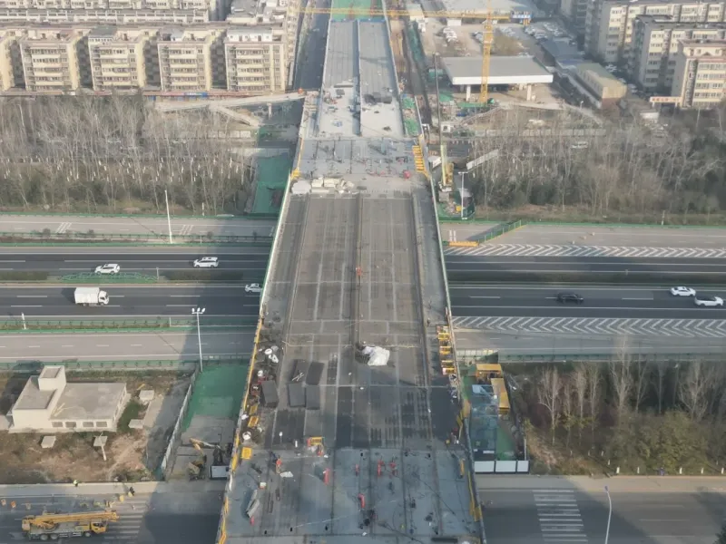 广运潭大道跨绕城高速项目作为西安“十七横十三纵”一级主干路的重要组成部分,南起袁雒路,北至灞浦一路,全长约1.1公里。近日,项目主线桥顺利合龙,为春节前通车奠定坚实基础。