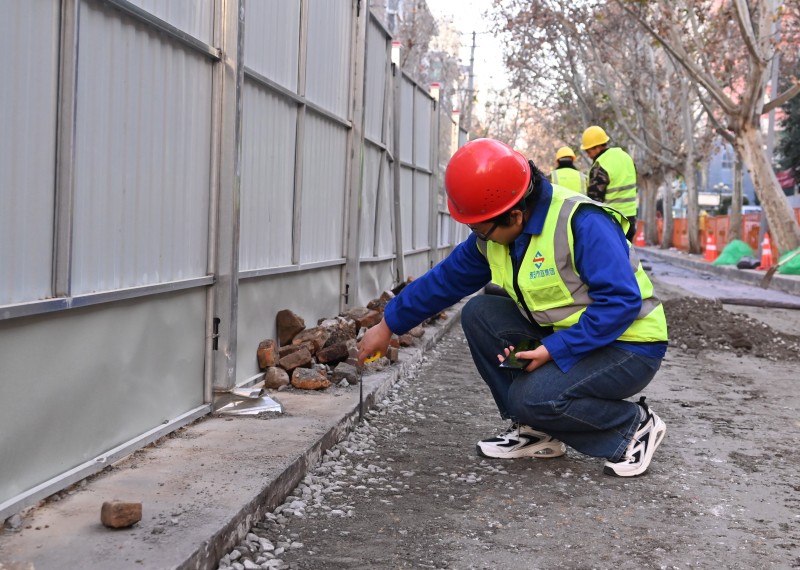 碑林区支路、次干路微改造项目工程现场,西安城投市政建设集团项目技术总工张省婷带着卷尺蹲在乐居场人行道旁,正与施工人员核对拓宽尺寸,“差一毫米都不行!”她说道。 从路基清表的深度控制,到绿化带土壤改良的配比调试,再到无障碍坡道的坡度校准,她都逐一明确标准、细化流程。