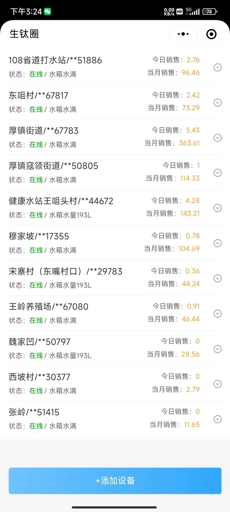 打开手机微信小程序,厚镇区域11台社区健康水站的各项数值一目了然。水站提供矿物质水和纯净水两种水质,用户可根据小程序上的设备状态选择相应的水机,获取甘甜洁净的直饮水。